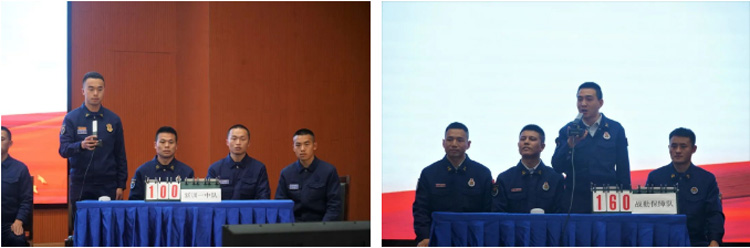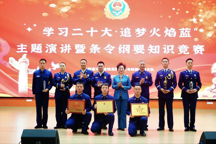 此次活動(dòng)采取現(xiàn)場(chǎng)演講和知識(shí)競(jìng)賽的形式進(jìn)行。在黨的二十大精神暨條令綱要知識(shí)競(jìng)賽環(huán)節(jié),由訓(xùn)保支隊(duì)機(jī)關(guān)、新訓(xùn)大隊(duì)組成的5個(gè)參賽隊(duì),圍繞黨的二十大精神知識(shí)點(diǎn)、條令綱要內(nèi)容,通過(guò)必答、搶答、風(fēng)險(xiǎn)、加賽四個(gè)競(jìng)賽環(huán)節(jié)進(jìn)行角逐。賽場(chǎng)上,選手們精神飽滿、團(tuán)結(jié)協(xié)作、沉著應(yīng)答,活動(dòng)現(xiàn)場(chǎng)氣氛緊張活躍、扣人心弦,引來(lái)了場(chǎng)下觀眾陣陣掌聲。在主題演講環(huán)節(jié)中,5名參賽隊(duì)員緊扣主題,結(jié)合學(xué)習(xí)黨的二十大精神所思所悟,從身邊人、身邊事講起,用一個(gè)個(gè)扣人心弦的感人故事、一幕幕赴湯蹈火的戰(zhàn)斗場(chǎng)景、一句句感人肺腑的質(zhì)樸話語(yǔ),真情講述了消防救援隊(duì)伍竭誠(chéng)為民的初心使命,充分展現(xiàn)了新時(shí)代消防救援隊(duì)伍的嶄新風(fēng)貌!最后,通過(guò)激烈的爭(zhēng)奪,四中隊(duì)、三中隊(duì)、一中隊(duì)分別榮獲知識(shí)競(jìng)賽第一名、第二名、第三名,蔣傳玉、劉麟、吳潔熠分別榮獲主題演講冠軍、亞軍、季軍。
